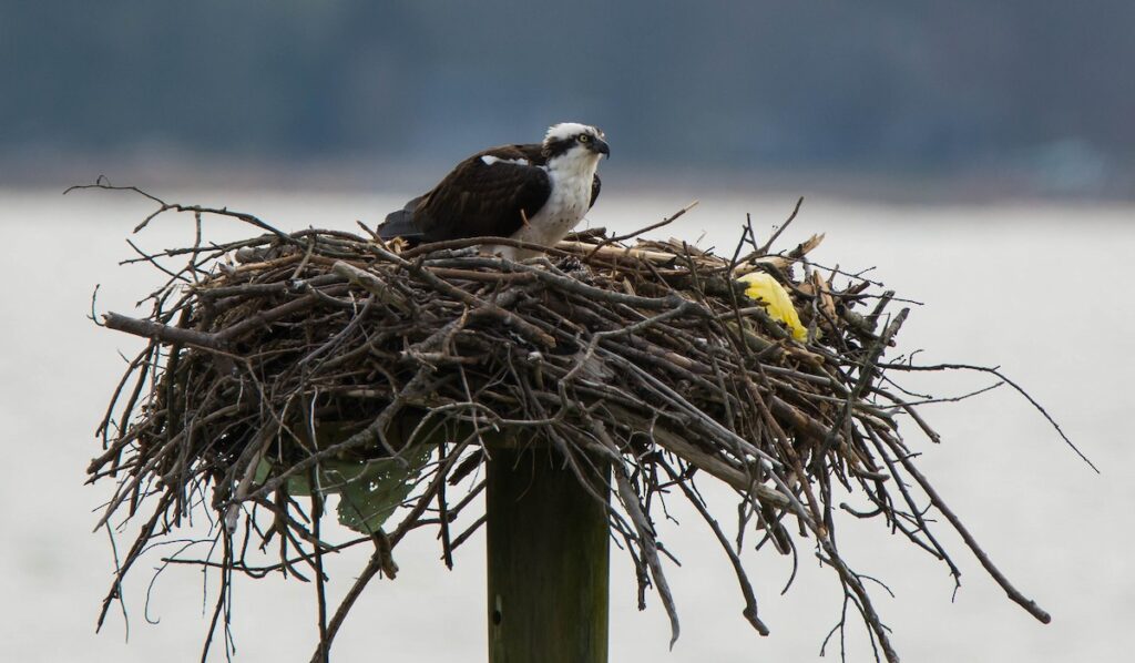 They are commonly seen soaring over shorelines, patrolling lakes and rivers, and sitting on their large nests typically found near water. Many lakes or ponds will have platforms set up to attract a breeding pair and will help keep these birds from nesting on top of electrical poles.