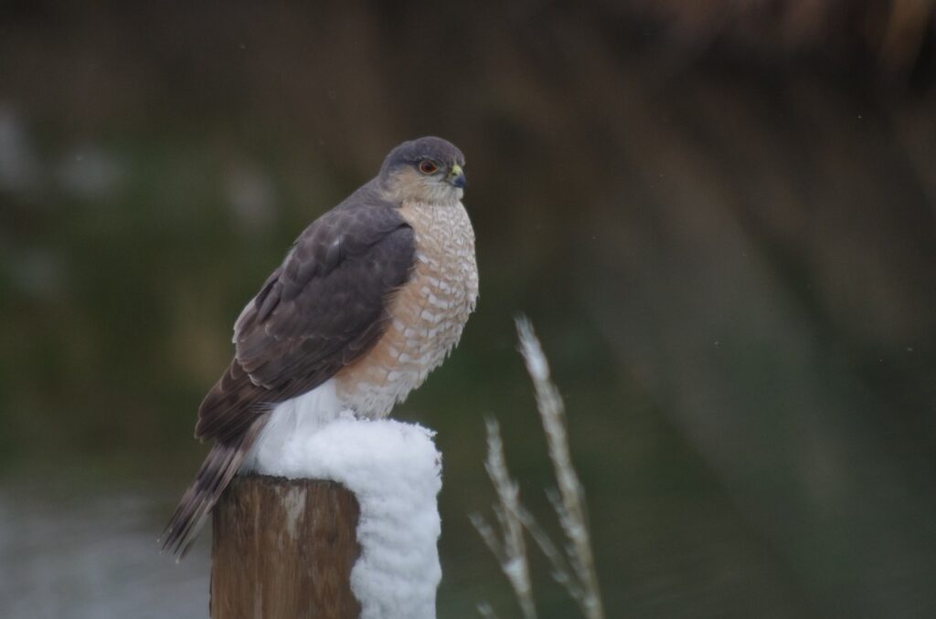 These birds look very similar to the Cooper’s hawk but are smaller and have a squared tip to their tail rather than a rounded tip like the Cooper’s hawk. They will fly in a similar accipiter style but with a single flap-glide pattern. They have different colorations the farther into Mexico and Central America they go.