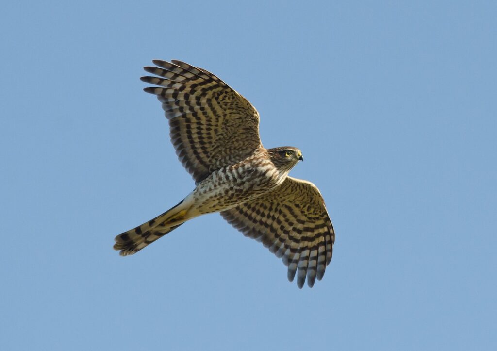 Sharp-shinned Hawks of the Appalachians and Western mountains may remain there year-round, while birds that breed in the northern U.S. and Canada migrate and may winter in the rest of the U.S. or migrate as far as southern Central America. During migration, they can be found in open habitats or high in the sky, flying along ridgelines.