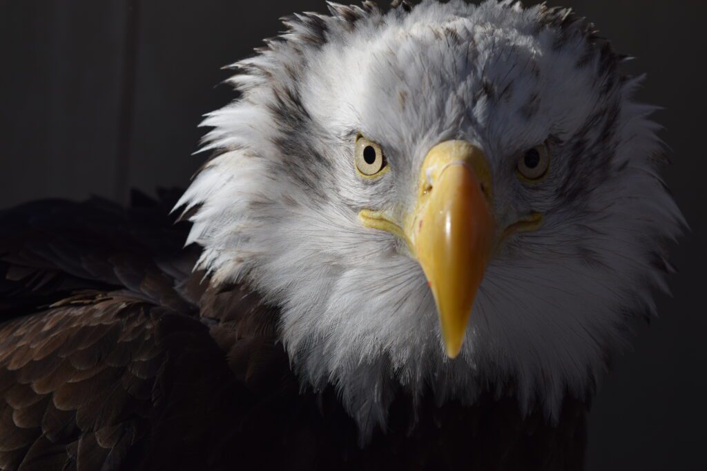 The Bald Eagle has served as the national symbol of the United States since 1782 and has held spiritual significance for Native American communities long before that. Contrary to their name, these majestic birds are not actually bald; their striking white heads contrast beautifully with their rich chocolate-brown bodies and wings. You can often find Bald Eagles near lakes, rivers, reservoirs, marshes, and coastal areas. Once threatened by hunting and pesticides, Bald Eagles have rebounded thanks to protective measures. Adult Bald Eagles display white heads and tails paired with dark brown bodies and wings, while their legs and beaks are a vivid yellow. Immature Bald Eagles, on the other hand, have predominantly dark heads and tails, with their brown wings and bodies mottled with varying amounts of white. These birds often scavenge for food by harassing others or consuming carrion. While their primary diet consists of fish, they also hunt mammals, gulls, and waterfowl.