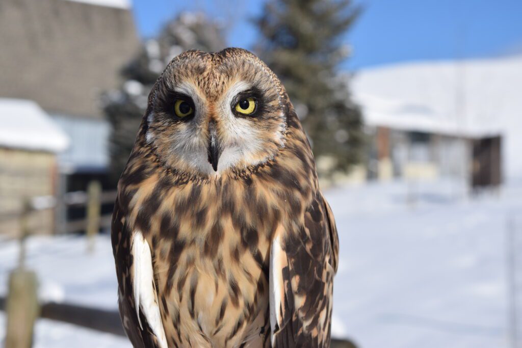 - This species of owl nests on the ground. The female Short-eared Owls often defecate on their eggs, the smell helps repel predators.